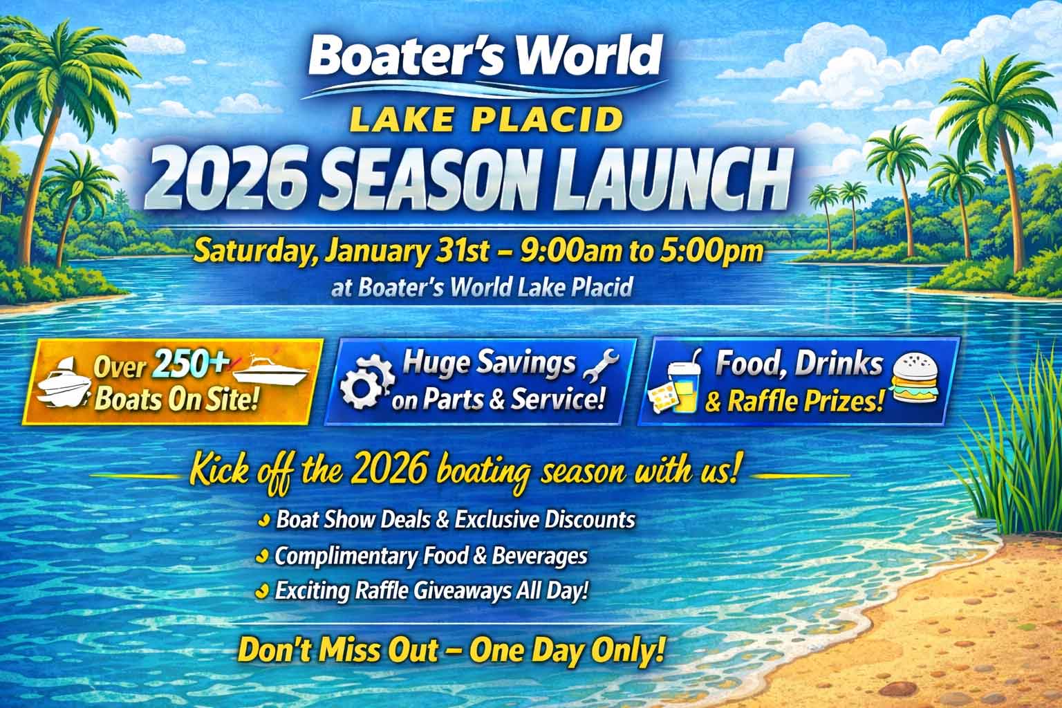 Kick off the 2026 boating season with us on January 31st at Boater’s World Lake Placid! Enjoy boat show pricing on 250+ boats on site, plus exclusive discounts on Service and Parts & Accessories - all in one place, one day only.